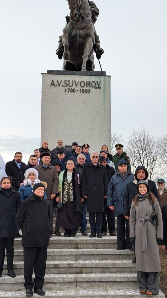 Ceremonia de depunere a coroanelor de flori cu ocazia împlinirii a 294 de ani de la nașterea generalului Alexandr SUVOROV a avut loc zilele trecute la monumentul acestuia din comuna vrânceană DUMBRĂVENI. Depunerea unei coroane la statuia lui SUVOROV este o tradiție a ambasadei RUSIEI, evenimentul având loc aproape în fiecare an, cu sprijinul autorităților locale și județene. Evenimentul din acest an a avut loc în plină campanie electorală pentru alegerile prezidențiale și parlamentare în ROMÂNIA.